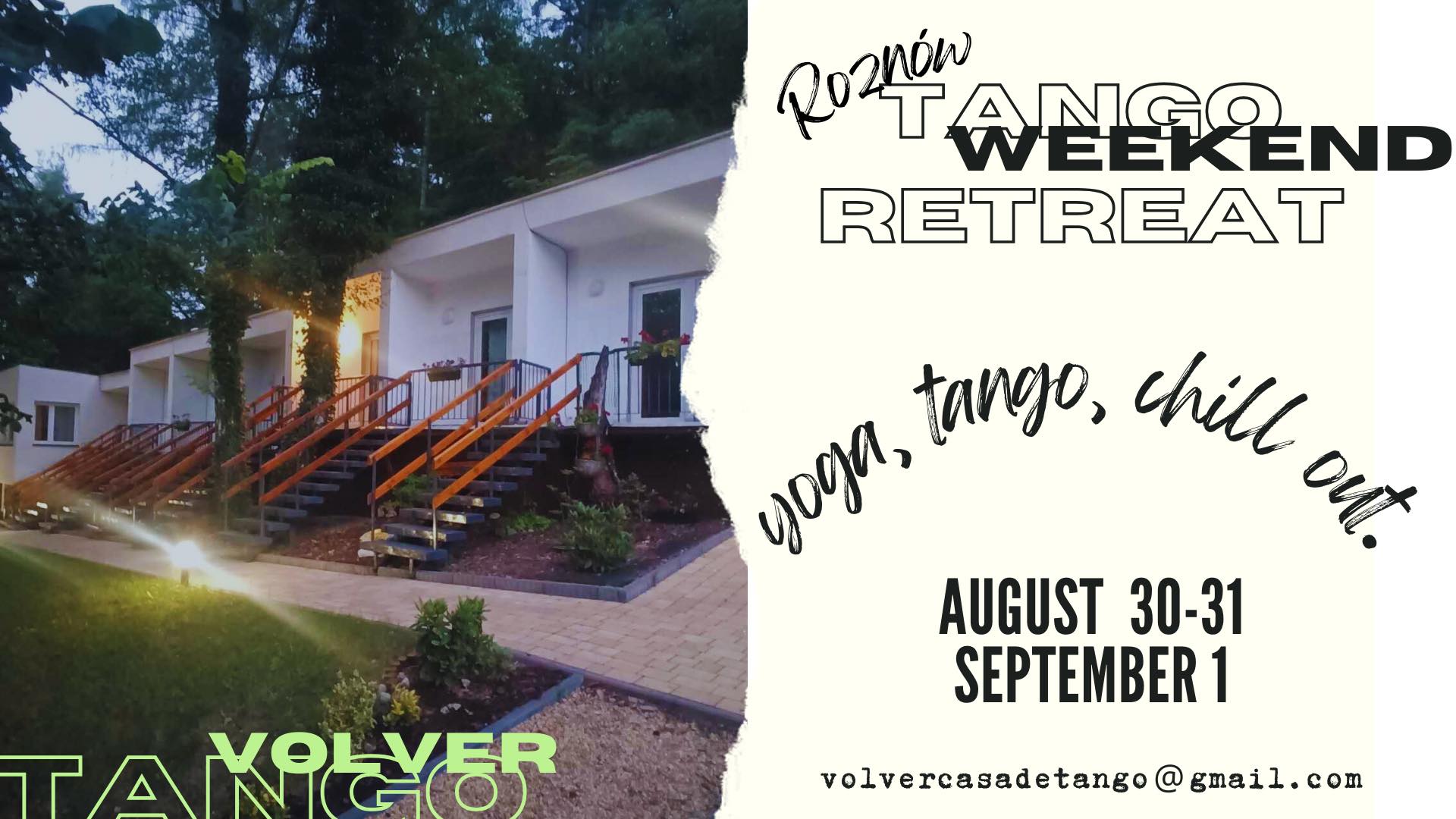 Join Us for a Tango Retreat at Roznów Lake! Tangovolver moves outdoors for a weekend at Roznów Lake B&B for a magical weekend of tango, yoga, and surrounded by nature. Connect