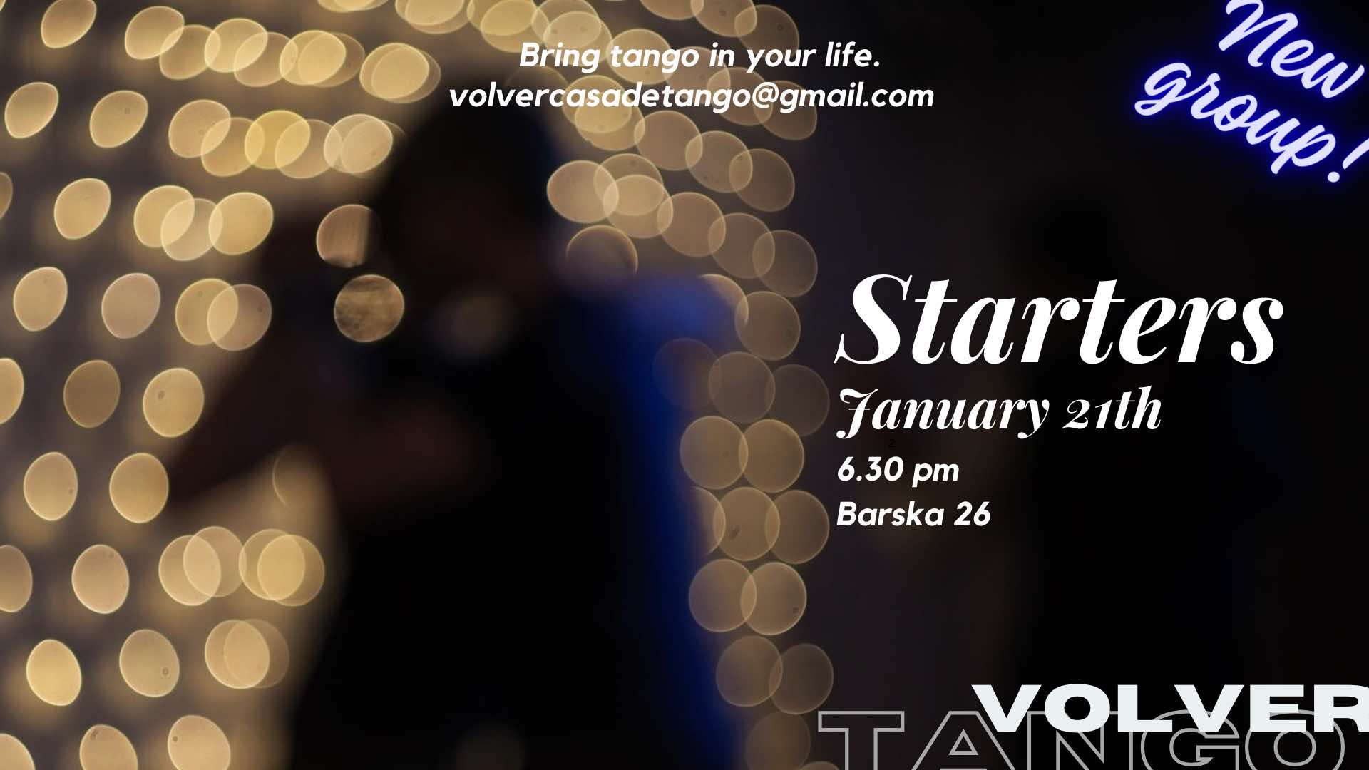 Welcome to Tango! September 23rd the new season starts in Tangovolver! Lessons for all levels from learning the first steps to the one who will challenge you more passing always