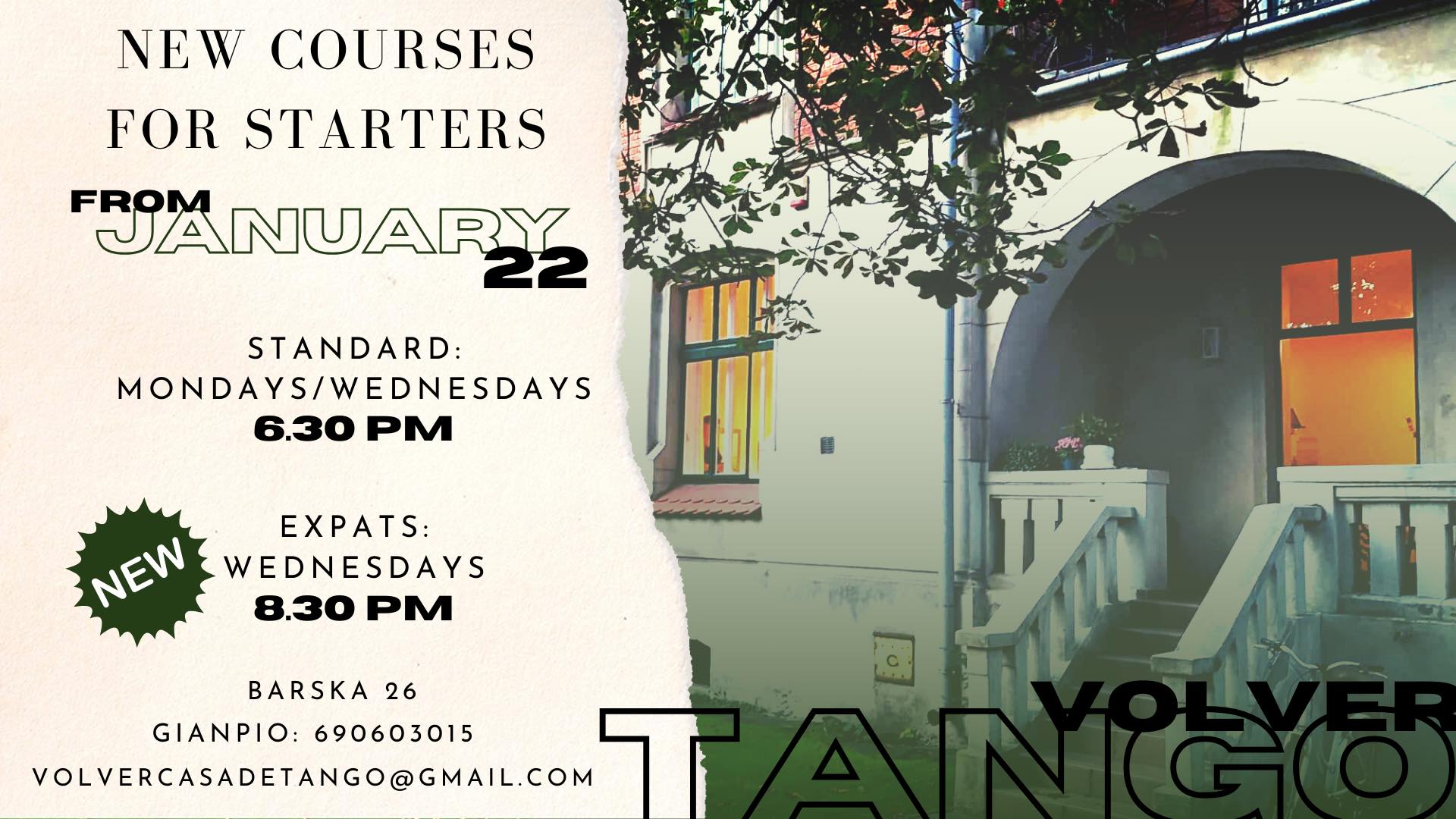 Unveil the Magic of Tango at Our Cozy Krakow School! 🌟 New year, new courses in Tangovolver! From January 22th we will start new tango courses for starters! In Barska